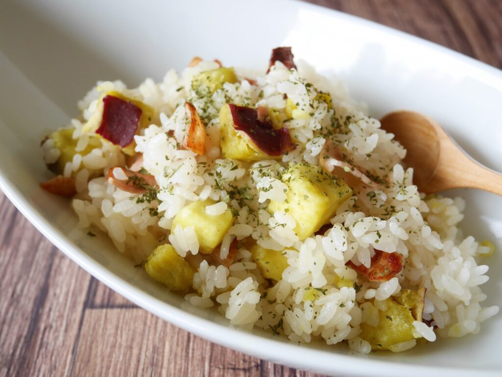 さつまいもとベーコンの洋風炊き込みごはん